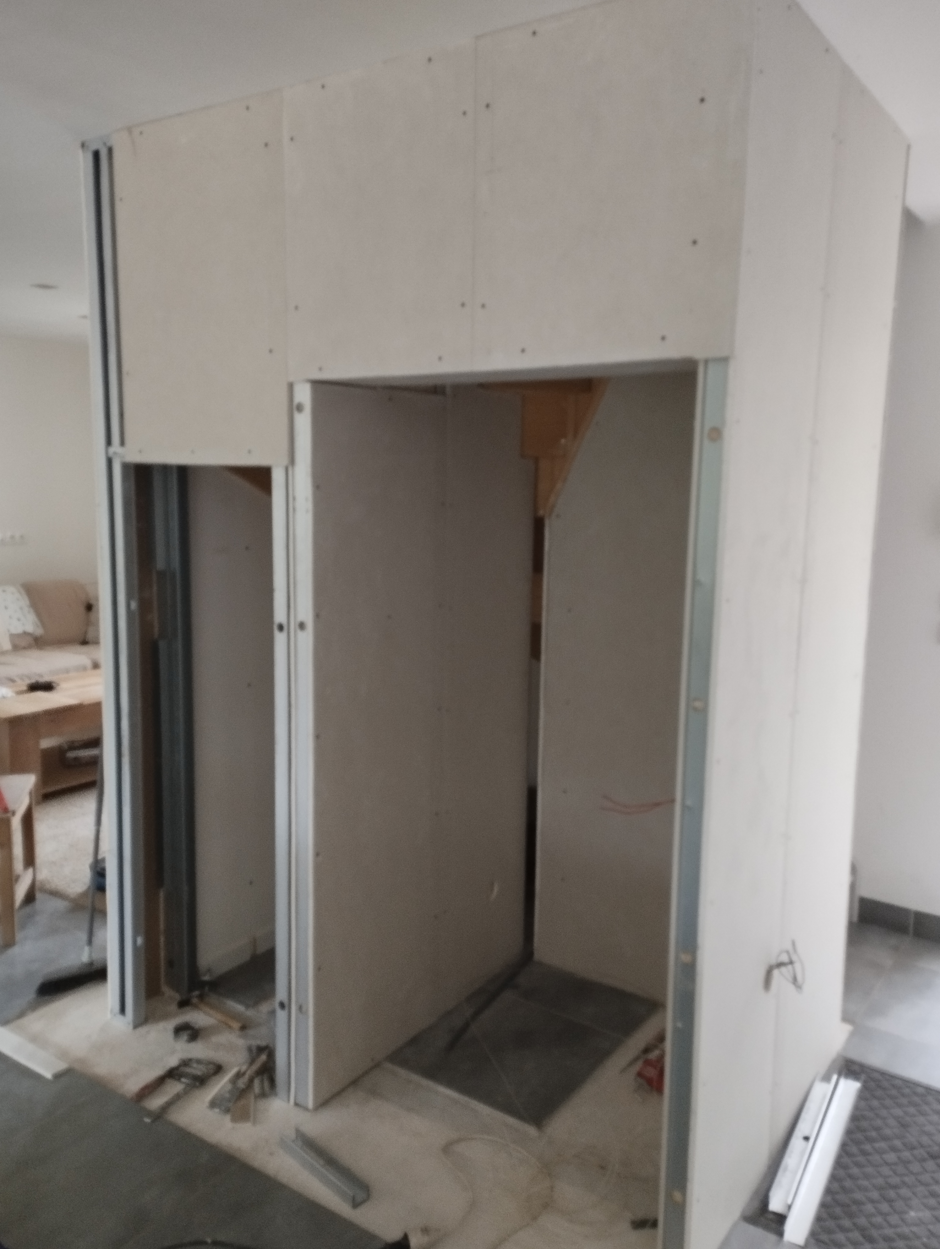 installation d’un réfrigérateur sous un escalier (début des travaux )